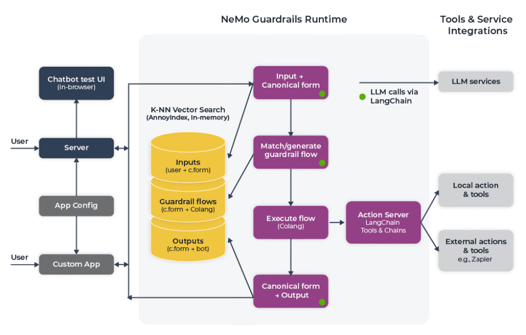 - NVIDIA NeMo Guardrails: Uses “Colang” to define hard boundaries. It can force the model to stay on topic or check the output against a secondary “fact-checking” model before the first token reaches the user.